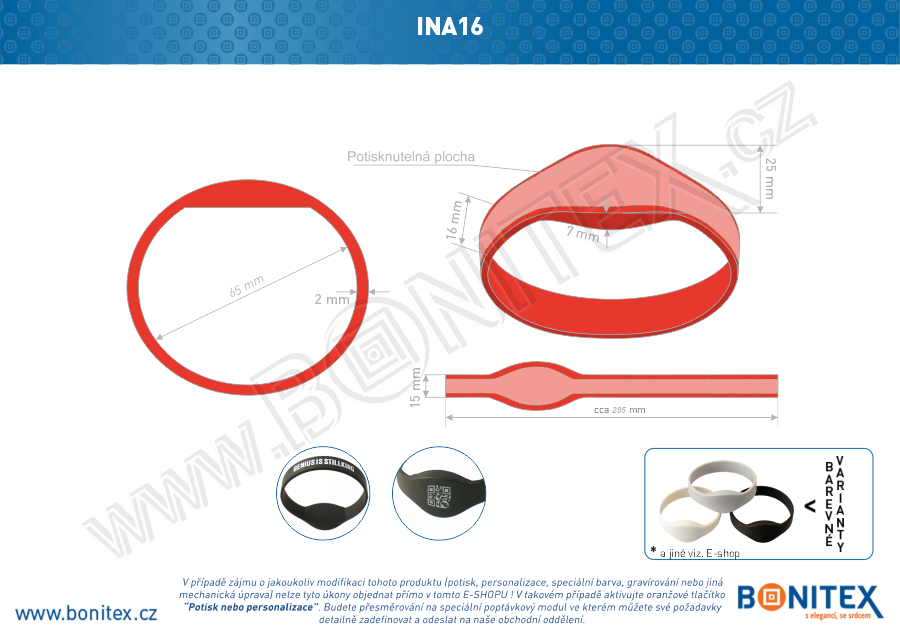 V případě zájmu o jakoukoliv modifikaci tohoto produktu (potisk, personalizace, speciální barva, gravírování nebo jiná mechanická úprava) nelze tyto úkony objednat přímo v tomto E-SHOPU ! V takovém případě aktivujte oranžové tlačítko (výše) "Potisk nebo personalizace" nebo klikněte ZDE. Budete přesměrování na speciální poptávkový modul ve kterém můžete své požadavky detailně zadefinovat a odeslat na naše obchodní oddělení.