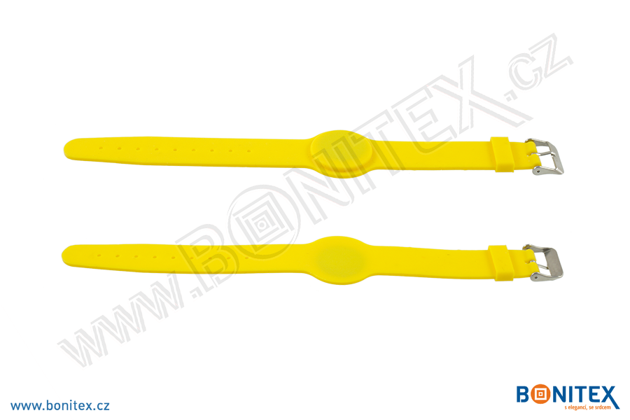 Silikonový identifikační náramek ve žlutém provedení s bezkontaktním RFID čipem na frekvenci 13,56 MHz je vybaven spolehlivým čipem EM4102. S rozměry 242x20 mm je vhodný pro přístupové a identifikační systémy aquaparků, bazénů, saun a dalších zařízení.