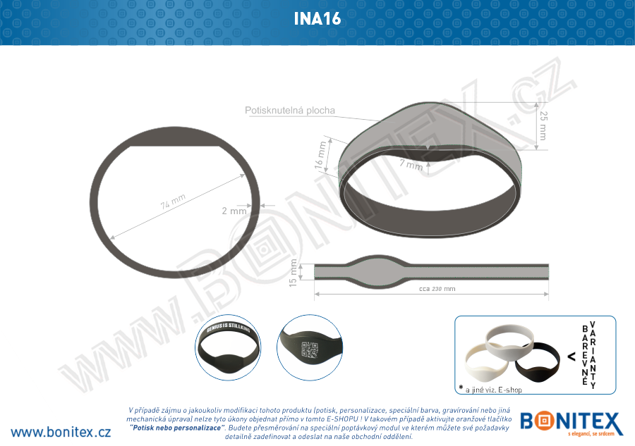 V případě zájmu o jakoukoliv modifikaci tohoto produktu (potisk, personalizace, speciální barva, gravírování nebo jiná mechanická úprava) nelze tyto úkony objednat přímo v tomto E-SHOPU ! V takovém případě aktivujte oranžové tlačítko (výše) "Potisk nebo personalizace" nebo klikněte ZDE. Budete přesměrování na speciální poptávkový modul ve kterém můžete své požadavky detailně zadefinovat a odeslat na naše obchodní oddělení.