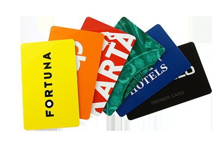 Standardní karta bez čipu nebo s kontaktním čipem, RFID (NFC) čipem, magnetickou páskou, čárovým kódem nebo QR kódem, vyrobená z bílého plastu s potiskem, případně i různými vizuálními efekty a personalizací. Minimální množství poptávky:
